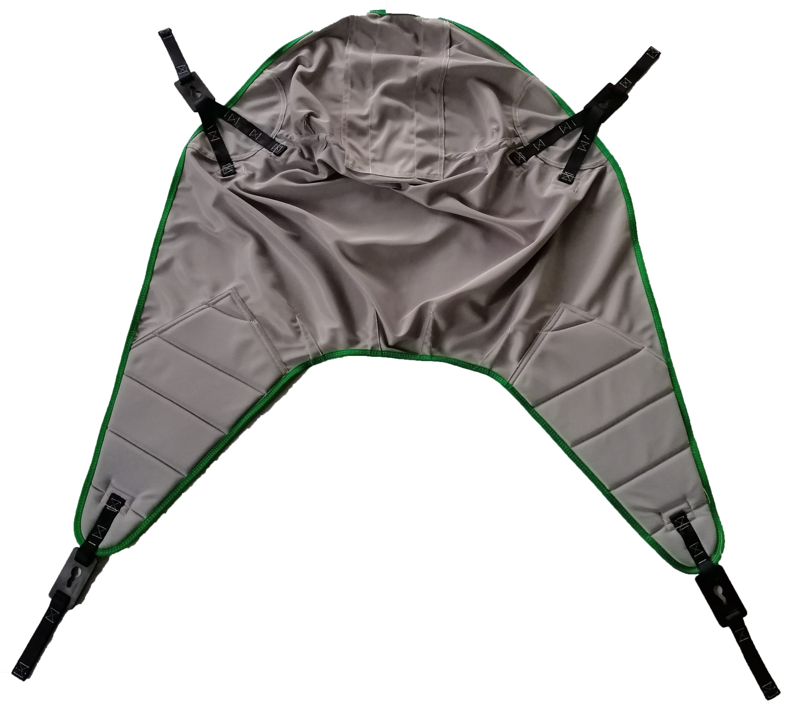 EMR slings are economically designed for patient lifters with clip attachments. It’s not just our clips that the make our slings compatible; it’s every measurement, fabric used, padding thickness and placement, and “back stay” length and flexibility. Every tiny detail matters when it comes to true compatibility. Patient comfort and safety, along with intuitive features of ease for caregiver use, are an integral part of every sling we make. Slings have color coded trim to reflect sizes. SWL 660lbs.